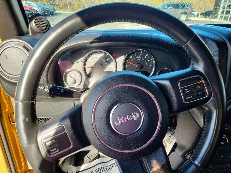 Only 90,994 Miles! Boasts 21 Highway MPG and 17 City MPG! This Jeep Wrangler delivers a Gas V6 3.6L/231 engine powering this Automatic transmission. SIRIUSXM SATELLITE RADIO (subscription required), PWR CONVENIENCE GROUP -inc: pwr heated mirrors, pwr locks, pwr windows w/front one-touch down, remote keyless entry, security alarm, auto-dimming rearview mirror w/reading lamp, P255/75R17 ON/OFF-ROAD OWL TIRES.* This Jeep Wrangler Features the Following Options *24S CUSTOMER PREFERRED ORDER SELECTION PKG -inc: 3.6L V6 engine, 5-speed auto trans, 17 x 7.5 aluminum wheels, P255/75R17 on/off-road OWL tires, air cond, leather-wrapped steering wheel, chrome/leather wrapped shift knob , MOPAR SLUSH MATS, DEEP-TINT SUNSCREEN WINDOWS, CONVENTIONAL REAR DIFFERENTIAL (STD), BLACK INTERIOR, CLOTH SEAT TRIM, AIR CONDITIONING, 5-SPEED AUTOMATIC TRANSMISSION -inc: hill-descent control, tip start, 3.6L SMPI 24V VVT V6 ENGINE (STD), 3.21 AXLE RATIO, 17 X 7.5 ALUMINUM WHEELS.* Visit Us Today *For a must-own Jeep Wrangler come see us at Victor Chrysler Dodge Jeep Ram, 6560 Anthony drive, Victor,, NY 14564. Just minutes away!