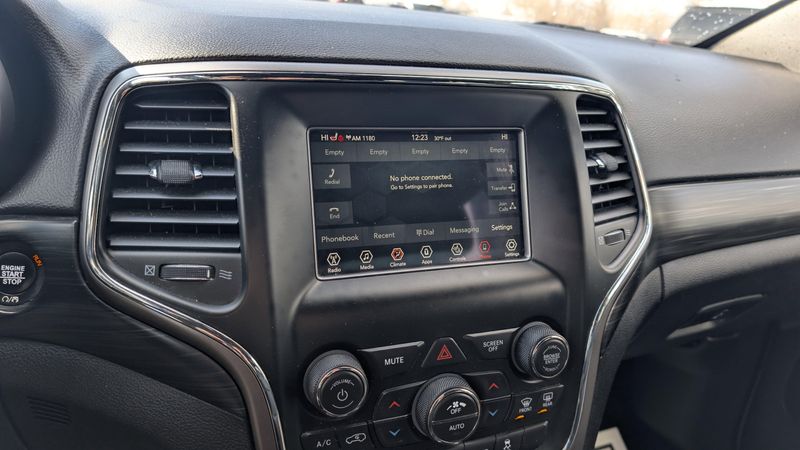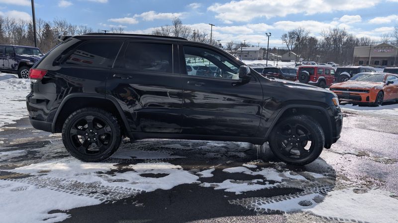 Delivers 25 Highway MPG and 18 City MPG! This Jeep Grand Cherokee delivers a Regular Unleaded V-6 3.6 L/220 engine powering this Automatic transmission. TRANSMISSION: 8-SPEED AUTOMATIC (850RE) (STD), QUICK ORDER PACKAGE 2BC UPLAND -inc: Engine: 3.6L V6 24V VVT UPG I w/ESS, Transmission: 8-Speed Automatic (850RE), Rear View Auto Dim Mirror, Rear Fascia Black MIC Step Pad, Power 8-Way Driver/Manual Passenger Seat, Power 4-Way Driver Lumbar Adjust, Blue-Accent Badges, Dark Headlamp Bezel Finish, Security & Convenience Group, Remote Start System, 115V Auxiliary Power Outlet, Universal Garage Door Opener, Heated Front Seats, Heated Steering Wheel, Power Liftgate, Security Alarm, Dark Day Light Opening Moldings, Gloss Black Rear Fascia Applique, Gloss Black Exterior Accents, Tow Hooks, Liquid Titanium Accents, Dark Lens Taillamps, Selec-Terrain System, Gloss Black Grille w/Black Honeycomb, Hill Descent Control, Gloss Black Roof Rails, Jeep Black Gloss Badging, FRONT LICENSE PLATE BRACKET.* This Jeep Grand Cherokee Features the Following Options *DIAMOND BLACK CRYSTAL PEARLCOAT, BLACK, CLOTH BUCKET SEATS, Wireless Phone Connectivity, Wheels: 20 x 8.0 Gloss Black Painted Aluminum, Valet Function, Trip Computer, Transmission: 8-Speed Automatic (850RE), Transmission w/Driver Selectable Mode and Sequential Shift Control, Tracker System, Towing Equipment -inc: Trailer Sway Control.* Stop By Today *Stop by Victor Chrysler Dodge Jeep Ram located at 6560 Anthony drive, Victor,, NY 14564 for a quick visit and a great vehicle!