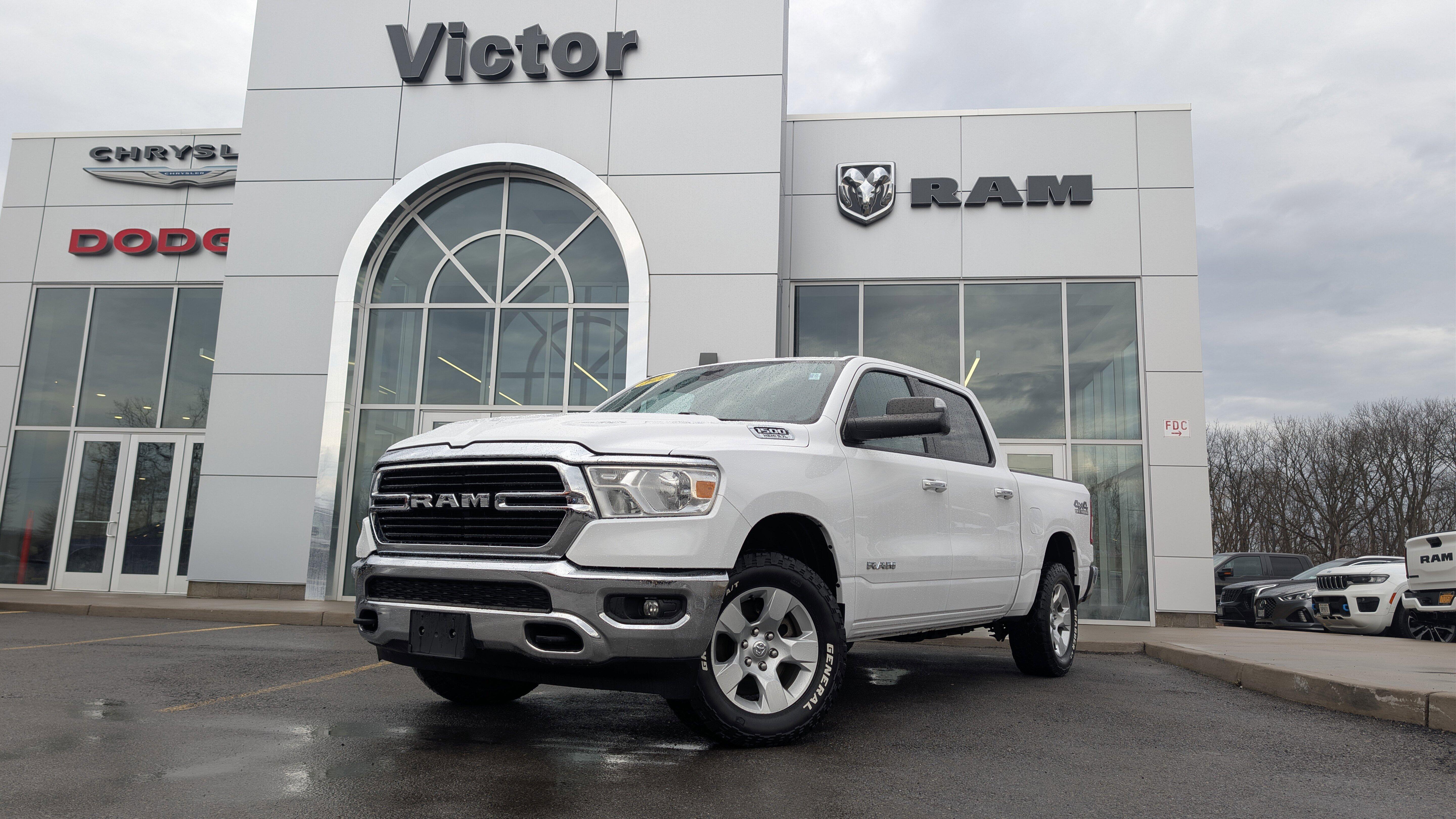 Scores 22 Highway MPG and 17 City MPG! This Ram 1500 delivers a Regular Unleaded V-8 5.7 L/345 engine powering this Automatic transmission. WHEELS: 18 X 8 CAST-ALUMINUM PAINTED (STD), TRANSMISSION: 8-SPEED AUTOMATIC (8HP75), TRAILER BRAKE CONTROL.* This Ram 1500 Features the Following Options *QUICK ORDER PACKAGE 27Z BIG HORN -inc: Engine: 5.7L V8 HEMI MDS VVT eTorque, Transmission: 8-Speed Automatic (8HP75), Big Horn Badge , REMOTE START SYSTEM, REAR WHEELHOUSE LINERS, REAR UNDERSEAT COMPARTMENT STORAGE, RADIO: UCONNECT 4 W/8.4 DISPLAY, GVWR: 7,100 LBS, FRONT & REAR RUBBER FLOOR MATS, ENGINE: 5.7L V8 HEMI MDS VVT ETORQUE -inc: Active Noise Control System, Heavy Duty Engine Cooling, GVWR: 7,100 lbs, Dual Rear Exhaust w/Bright Tips, Hemi Badge, 23 Gallon Fuel Tank, 18 Aluminum Spare Wheel, E-LOCKER REAR AXLE, BRIGHT WHITE CLEARCOAT.* Visit Us Today *Come in for a quick visit at Victor Chrysler Dodge Jeep Ram, 6560 Anthony drive, Victor,, NY 14564 to claim your Ram 1500!