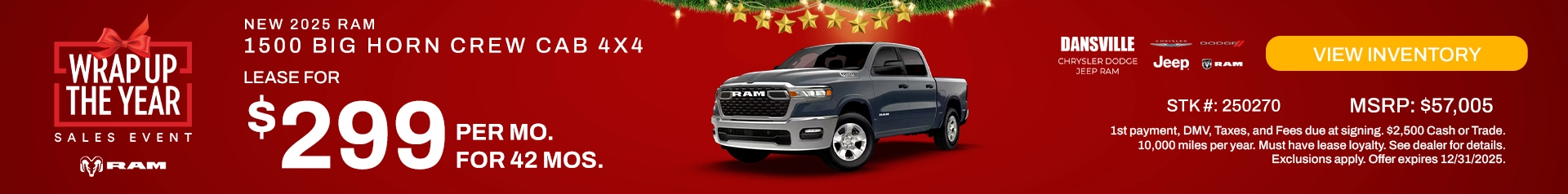 Visit Dansville Chrysler Dodge Jeep Ram in Dansville, NY, today to discover your next vehicle and take advantage of our finance specials. Let our friendly team help you drive home in the perfect new model for you!