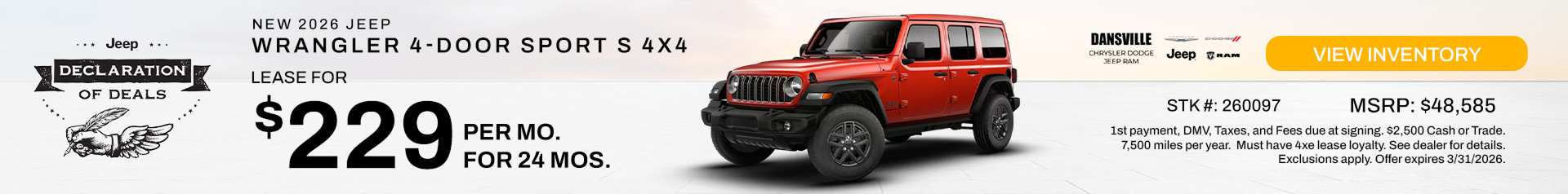 Jeep has built a reputation for crafting some of the best off-road vehicles in the industry, and Dansville Chrysler Dodge Jeep Ram offers a fantastic selection of new Jeep vehicles for sale. Whether you’re eyeing the iconic Jeep Wrangler for your next outdoor adventure or the Jeep Grand Cherokee for a blend of luxury and capability, you’ll find plenty of options to suit your lifestyle. Jeep SUVs are known for their durability, off-road performance, and modern features, making them a great choice for drivers looking to explore beyond the pavement.